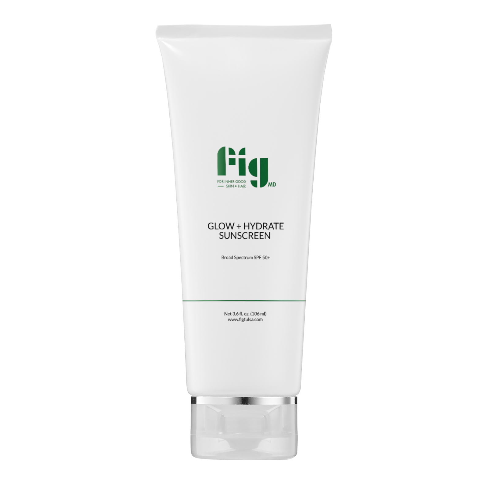 Fig MD Glow + Hydrate Sunscreen is a mineral based, multi-tasking SPF 50+ sunscreen doubles as a daily moisturizer. Broad spectrum UVA/UVB protection plus powerful hydration ingredients work to protect and prevent the visible signs of skin aging. Packed with soothing 90% green tea polyphenols plus five other potent antioxidants, this sunscreen also helps guard against harmful free radicals and environmental damage. Naturally tinted formula rubs in sheer.