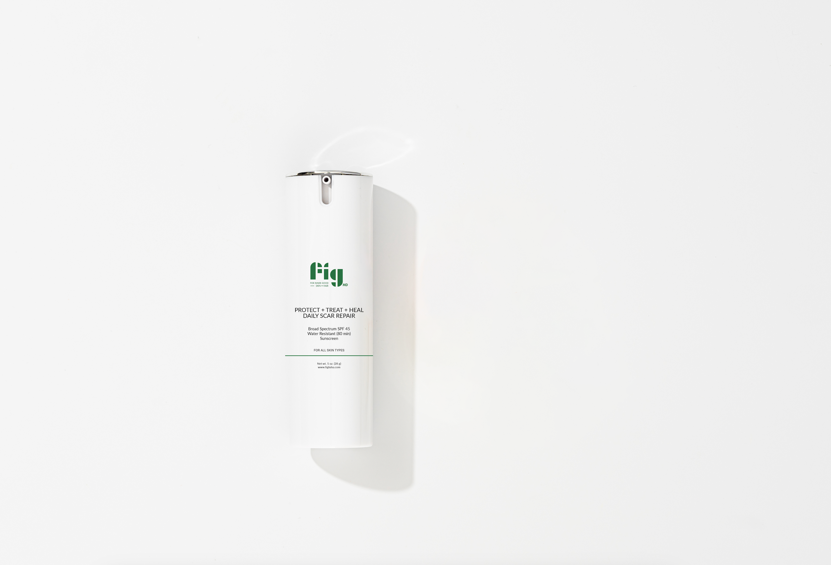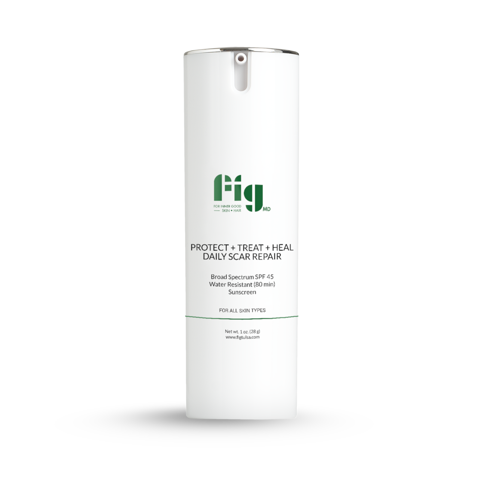 Fig MD Protect + Treat + Heal Daily Scar Repair Sunscreen is a dual-action formula that pairs anti-aging skin care with sheer, SPF 45 sun protection. It gently exfoliates dead skin cells and reveals fresh, new skin. Hyperpigmentation, scars, and redness are visibly minimized. Powerful antioxidants calm while conditioners hydrate to smooth and soften skin.