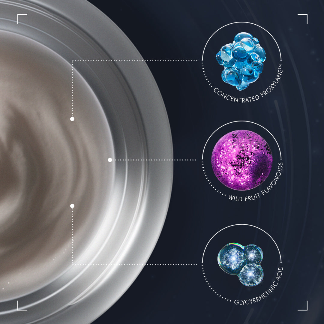 Glycation, a key factor of intrinsic aging, occurs when excess glucose molecules bind to structural proteins, such as collagen and elastin. This multi-phase process is accelerated by external aggressors, including UV and pollution, which cause oxidative stress. As glycation progresses, crosslinking occurs and forms a ladder-like structure, causing collagen and elastin to become rigid and brittle, and resulting in Advanced Glycation End-Products (A.G.E.).